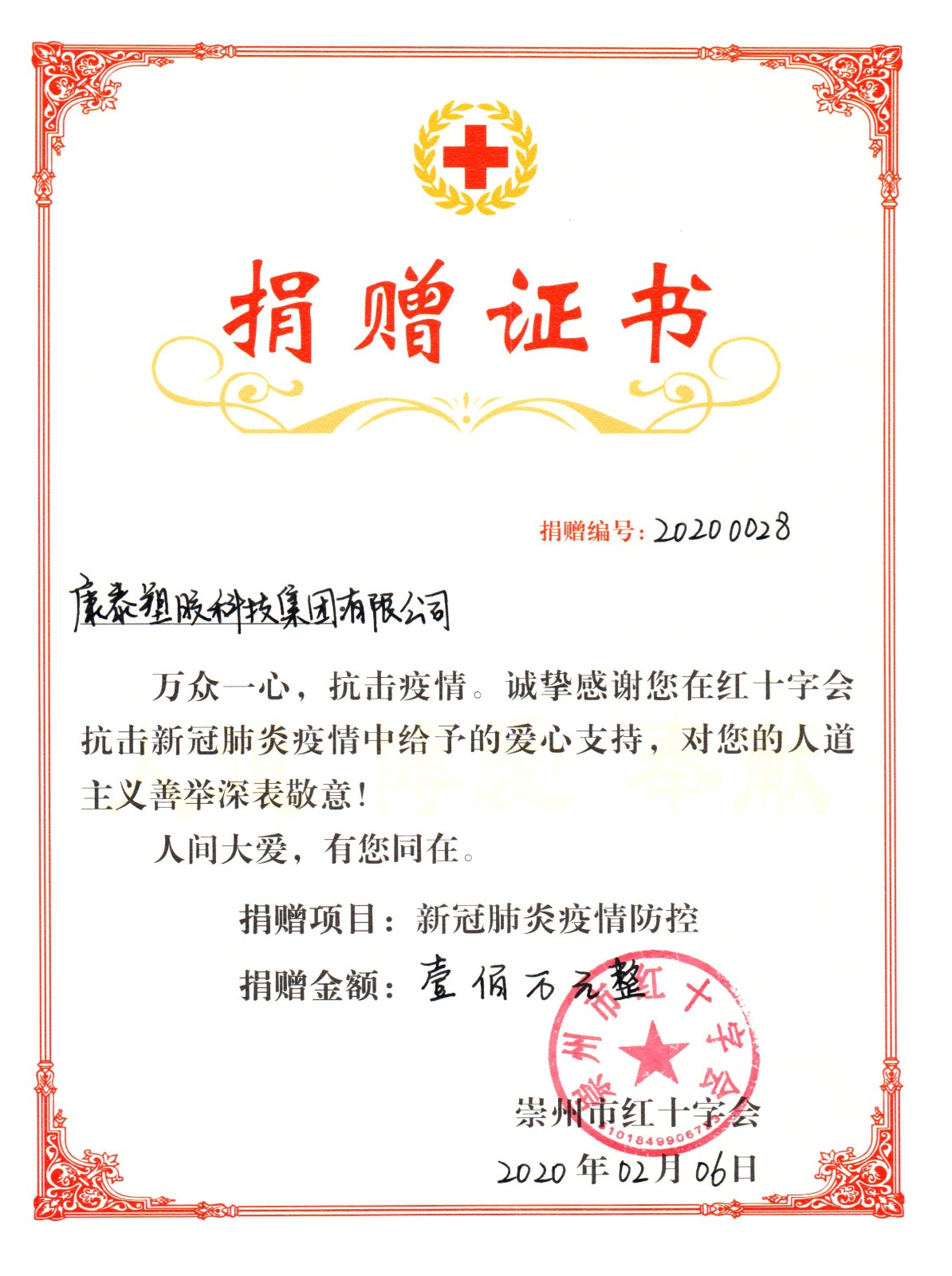 2022.03康泰集團捐款100萬元助力崇州市疫情防控阻擊戰(zhàn)2020年1月,正當全國人民喜迎新春佳節(jié)時,一場突然而來的新型冠狀病毒肺炎疫情肆虐中華大地。面對新型冠狀病毒全民戰(zhàn)爭,直接關系國家民族、企業(yè)興衰、自身安危,康泰塑膠科技集團有限公司作為一家有使命、有擔當?shù)慕ú钠髽I(yè),集團董事長林云青...閱讀人數(shù):8966 -
