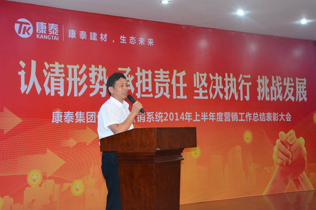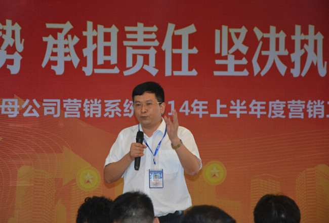 ? ? ? 7月11日8:20,母公司營銷系統(tǒng)全員個個精神飽滿、神采奕奕,在高亢激昂的《康泰之歌》中開啟全天總結(jié)匯報會議,成都、四川、重慶、云南、西安商務(wù)部、網(wǎng)絡(luò)部、市政部、家裝事業(yè)部、型材事業(yè)部、大客戶部十個團(tuán)隊,分別就2014年上半年度工作總結(jié)、下半年度工作規(guī)劃作出匯報。最后由營銷中心何朝暉總監(jiān)作營銷中心上半年度總結(jié)、下半年度形勢分析和工作規(guī)劃部署,何總首先對各團(tuán)隊負(fù)責(zé)人的工作匯報和規(guī)劃作一對一的詳細(xì)點評和指導(dǎo),并在總結(jié)中說道:“上半年營銷中心全員團(tuán)結(jié)一致、全力以赴,完成了上半年度的目標(biāo),可喜可賀。但要清醒看到房地產(chǎn)市場重大拐點的嚴(yán)峻形勢,完成下半年銷量指標(biāo)充滿挑戰(zhàn),要求營銷系統(tǒng)全員統(tǒng)一思想,堅定以認(rèn)清形勢、承擔(dān)責(zé)任、堅決執(zhí)行、挑戰(zhàn)發(fā)展的思路,將每項工作落到實處,奮力拼搏爭取圓滿完成下半年經(jīng)營指標(biāo)” 。