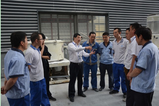 ?何總助在檢查后與各車間主任作改進(jìn)工作部署